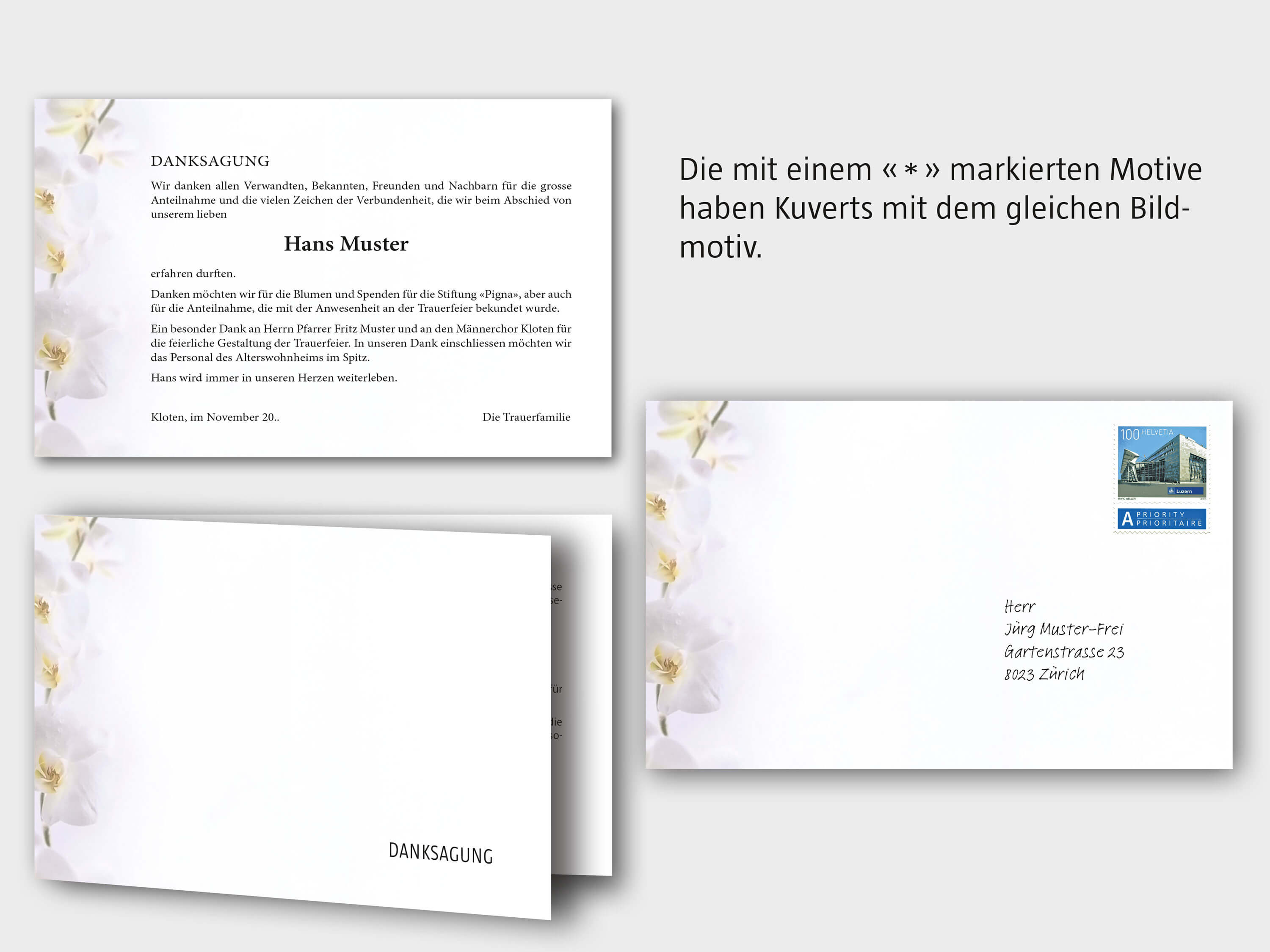 * Die Danksagungen mit einem Stern haben Kuverts mit dem gleichen Sujet. (